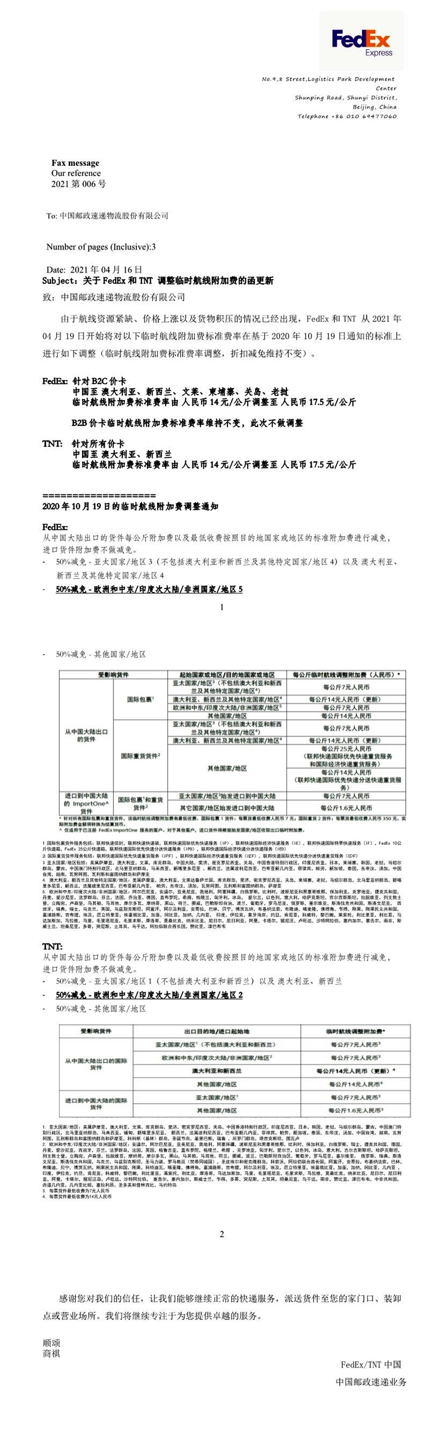 关于商业快递附加费