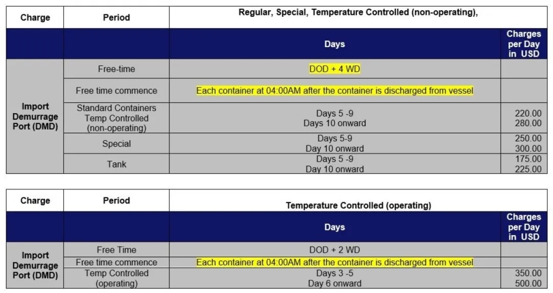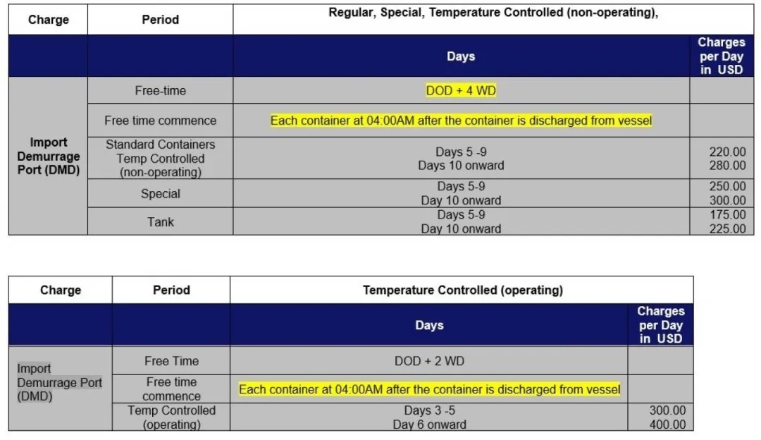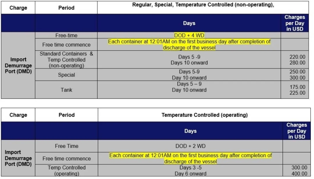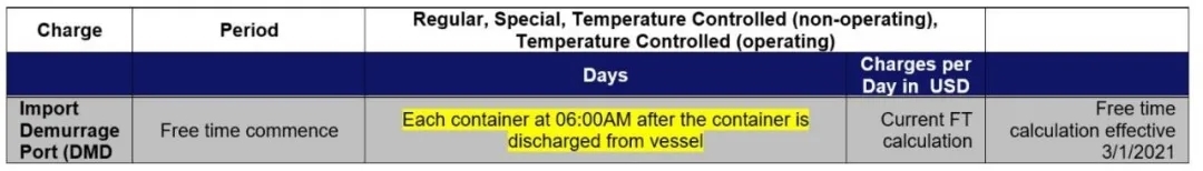 从2021年3月1日起,赫伯罗特将对美国的进口滞期费免费时间进行如下修改:
