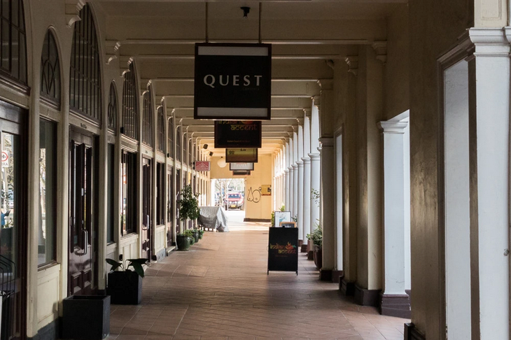 图片是9月14日在澳大利亚堪培拉市中心拍摄的封城期间空荡荡的商业街。新华社发
