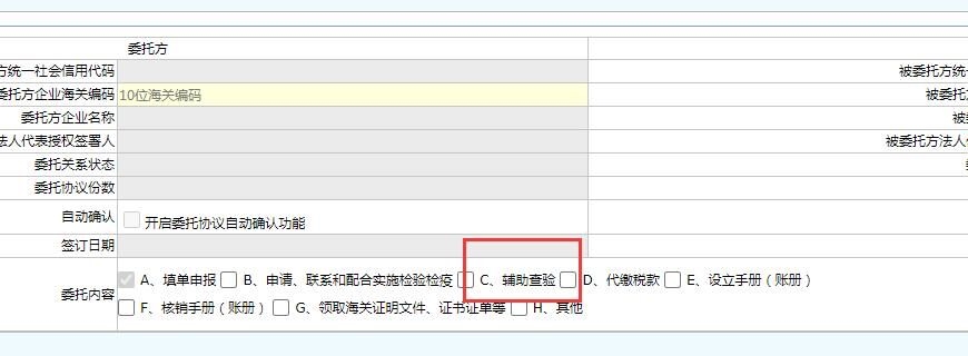 进单一窗口-->电子委托-->委托关系变更管理-->委托关系变更-->找到委托的报关行公司代码-->点进去后勾选辅助查验后发起-->发起后让客户提供10位代码给我司通知报关行公司接受变更即可!